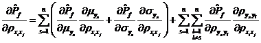 將式~分別代入式中,可得失效概率對變量均值