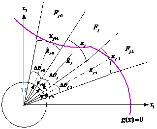為射線(xiàn)角的扇形,它們與失效邊界的交點(diǎn)處的特征半徑記為