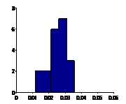 圖6.8失效概率對變量P標準差的可靠性試驗靈敏度估計值方差的直方圖 |