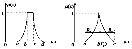 當b、c兩點重合時,隸屬函數蛻變為下式,其形狀如圖7.2(b)所示。