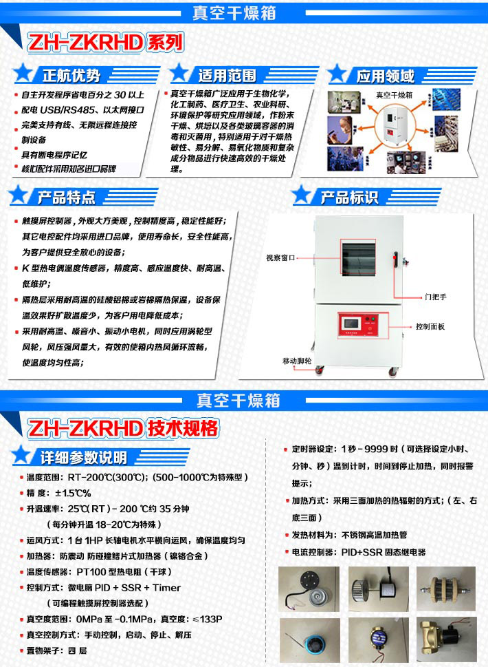 鼓風真空試驗箱廣泛應用于生物化學,化工制藥、醫療衛生、農業科研、環境保護等研究應用領域,作粉末干燥、烘培以及各類玻璃容器的消毒和殺菌用。特別適合于對干燥熱敏性、易分解、易氧化物質和復雜成分物品進行快速有效的干燥處理。
